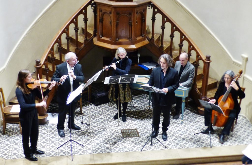 François Naturel (flûte traversière baroque) dirigeait cet ensemble composé d’Angela Werner (flûte traversière baroque et chant), Olivier Emont (basse), Marie Turini-Viard (violon), Pascale Costantini (basse de viole), et Sébastien Nadiras (clavecin).
