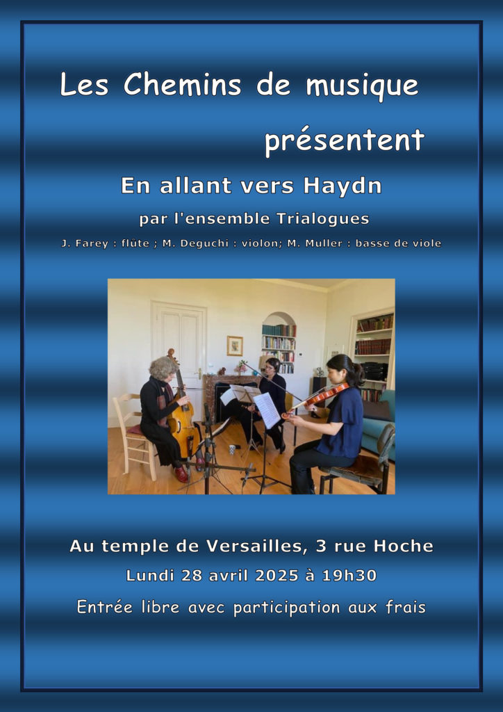 Lundi 28 avril à 19h30, l’ensemble Trialogues, avec en particulier Marianne Muller à la basse de viole, viendra pour le subtil concert instrumental « En allant vers Haydn »