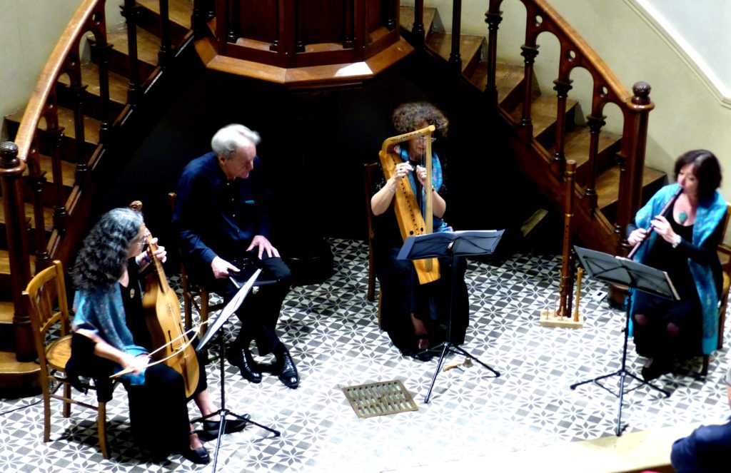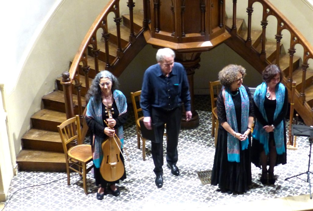 Belle assistance ce lundi soir pour ce tout premier rendez-vous au Temple dans le cadre du « Mois Molière »…Et un programme de choix, proposé par l’ensemble « Ephémère », composé pour la circonstance de Laurence MAMAN (chant et harpe), Pascale COSTANTINI (vièle et chant), Nathalie GODEFROID (flûtes et chant) et Pierre BOURHIS (chant).