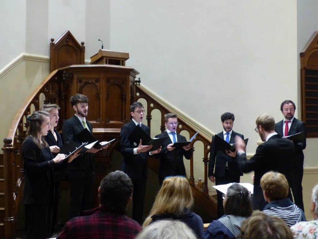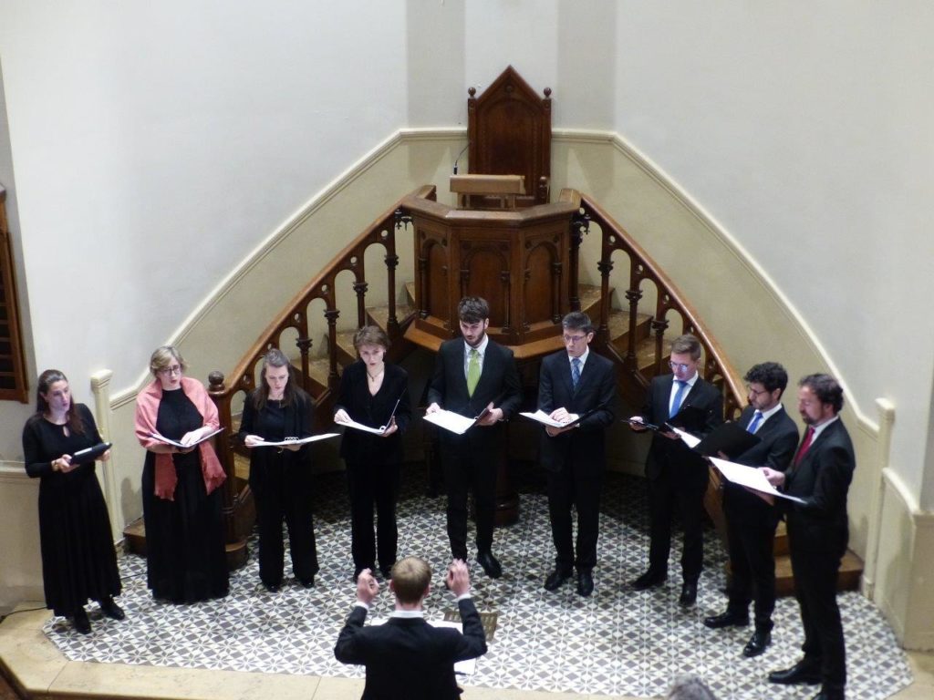 Béatrice GOBIN et Alice MARZUOLA (sopranos), Agnès BUCQUET et Ludmila KRIVICH (Altos), Romain CHAMPION et Matthias DEAU (ténors), Paul-Louis BARLET (baryton), Simon DUBOIS et Alan PICOL (Basses) ont fait résonner le Temple de ces somptueuses harmonies de musiques sacrées anglaises.