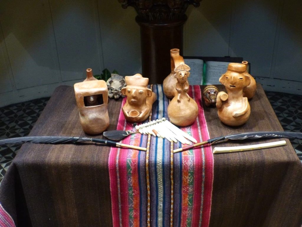 Nombreux ont été les spectateurs, après le concert, à dialoguer avec Pierre HAMON, et à admirer flûtes Aztèques, ocarinas, flûtes doubles ou triples, et autres vases siffleurs !